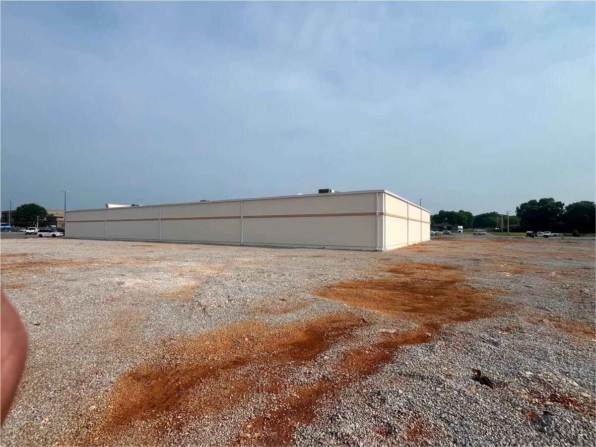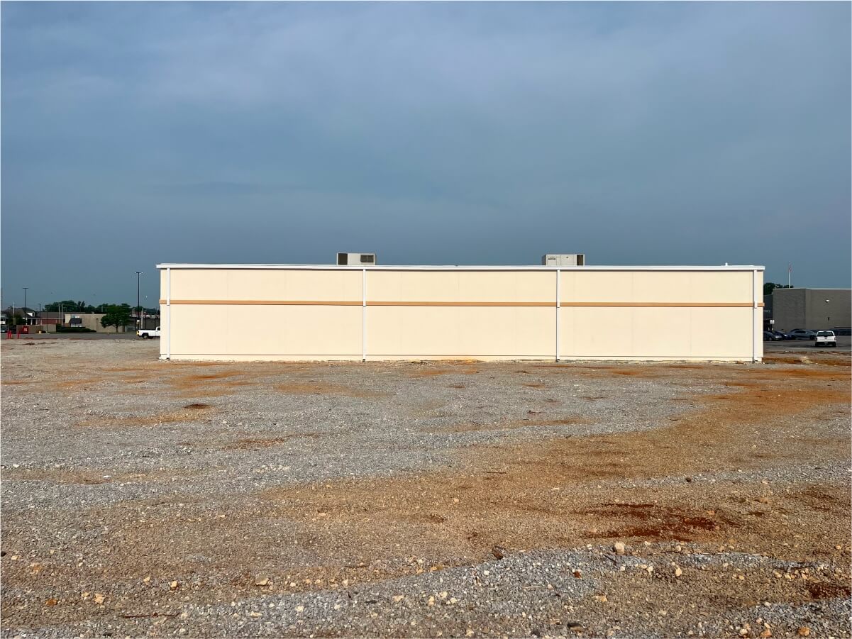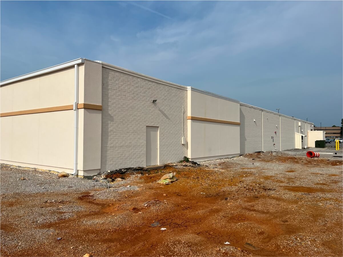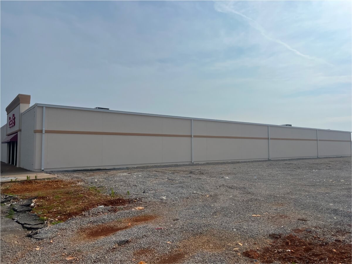 Add new structural exterior wall to damaged mall.